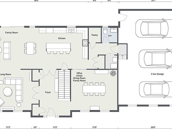 - Attached garage spaces: 3
