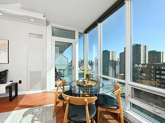 Residents enjoy an array of top-tier amenities, including a 24/7 concierge, a fully equipped fitness center, a jacuzzi, a sauna, a steam room, a resident lounge, a conference room, a children’s playroom, and a breathtaking roof deck with panoramic NYC and river views.