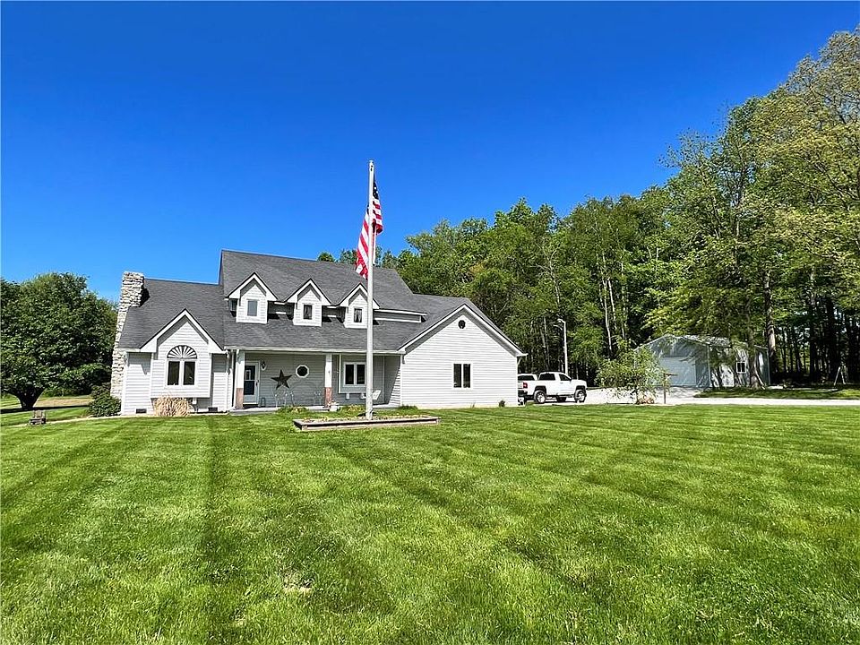This home has something for everyone! Beautiful cape cod home that has been well cared for. Upper level has a rec room with a bar & pool table to remain. Large master suite with a remodeled private bath; dual vanity, jacuzzi tub, tiled walk-in shower & large walk-in closet. Main level offers an eat-in kitchen with a breakfast bar and built-in breakfast nook. Formal dining room plus a formal living room with custom fireplace. Family room leads to a back deck perfect for making lots of great memories! Ideal area for grilling burgers for those summertime pool parties or just relaxing and enjoying the sunsets overlooking your fully stocked pond. Newer 24x27 pole barn with concrete floors. Covered front porch. Great location & lots of wildlife.