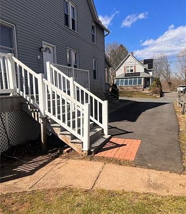 Welcome to your new one-of-a-kind home. Located in a convenient location near the highway but in a nice quiet neighborhood, this large apartment has it all. Park in your designated paved driveway and walk up the beautiful deck to enter this 3 bedroom, 2 full bathroom two-story unit. This apartment is well-maintained and full of natural light. On the main level you will find one bright bedroom, a spacious kitchen with stainless steel appliances and plenty of room for a kitchen table. Around the corner is a large full bath that is clean and up-to-date. Past the kitchen, walk upstairs to an enormous family room that has high vaulted ceilings with ceiling fans. Attached to the family room are two additional bedrooms with closets, a designated laundry room with washer and dryer, and a large bathroom equipped with a glass walk-in shower and huge closet for storage. All of this is tucked away inside a well-maintained house on a nicely manicured property near the end of a dead-end, quiet street. Come check out your new peaceful home