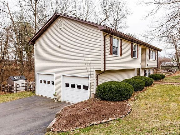 Exceptional location for this 3 bedroom property! Almost 2400 square feet of living space! This home has an open floor plan including an extremely spacious living room with hardwood flooring and plenty of natural light! Open to this room is a spacious dining room with slider to the upper deck. A kitchen is adjacent with newer stainless appliances. A large full bath is on this floor and has the potential to be made into a primary bath as well as a shared bathroom. 3 bedrooms on this floor are also spacious. The lower level includes a huge family room with a chimney ready for a gas stove! High ceilings are on this floor, built in shelving, a half bath with laundry and a slider to the screened in lower deck! 2 car garage plus an additional parking area that has blueberries and strawberries planted nearby! This property includes a fenced yard and new tankless propane fueled water heater! Enjoy the bucolic view of farmland and the Farmington Canal Heritage Trail winding right behind your property! Walk to picturesque Brignole Vineyards! Granby Bike Path also within reach! Newer appliances, light fixtures, hardwood floors (2017), solid doors, new carpet w/waterproof pad, newer windows, new deck railing, new propane tankless water heater, new well tank w/whole house filter, propane piped to fireplace, fence (2020), shed (2020), newer oil tank. Don't miss this special property at a great price! The trail is a linear park or greenway that begins in New Haven and winds its way 54 miles north to the Massachusetts border and beyond.