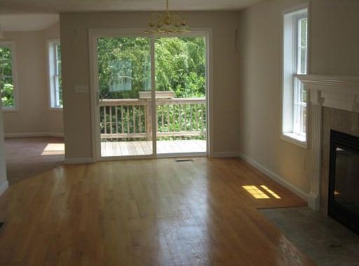 Here is your chance to own in a wonderful community ~ Attached 2 bedroom home with bright and sunny open floor plan. Wide open floor plan!! Gleaming hardwood floors! Double, sliding glass doors add to the bright, cheerfulness of this home. Spacious, front to back living room with gas fire place, large eat in kitchen complete with an island and enough room for a table. Generous Deck looks out over a private easy to manage yard. Basement is unfinished but has big,double wide,ground level window that would make this a perfect family room in the future. 1 Car garage!