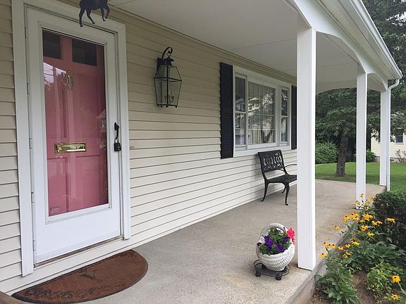 Front farmers porch welcomes you to this Beautifully cared for home in a neighborhood setting: offering 3 bedrooms, 3 full baths , gleaming hardwood floors, 2 fireplaces Spacious formal living room and dining room both with custom built ins . Cabinet packet kitchen and dining area open to FP family room, 3 bedrooms with hdwd floors , master with private bath . Heated for season room leads to perfectly manicured yard and various flower gardens . Recent improvements include composite deck, 1st floor bath and wainscoting accents . Ample expansion possibilities in heated basement with 2nd fireplace . Great highway access