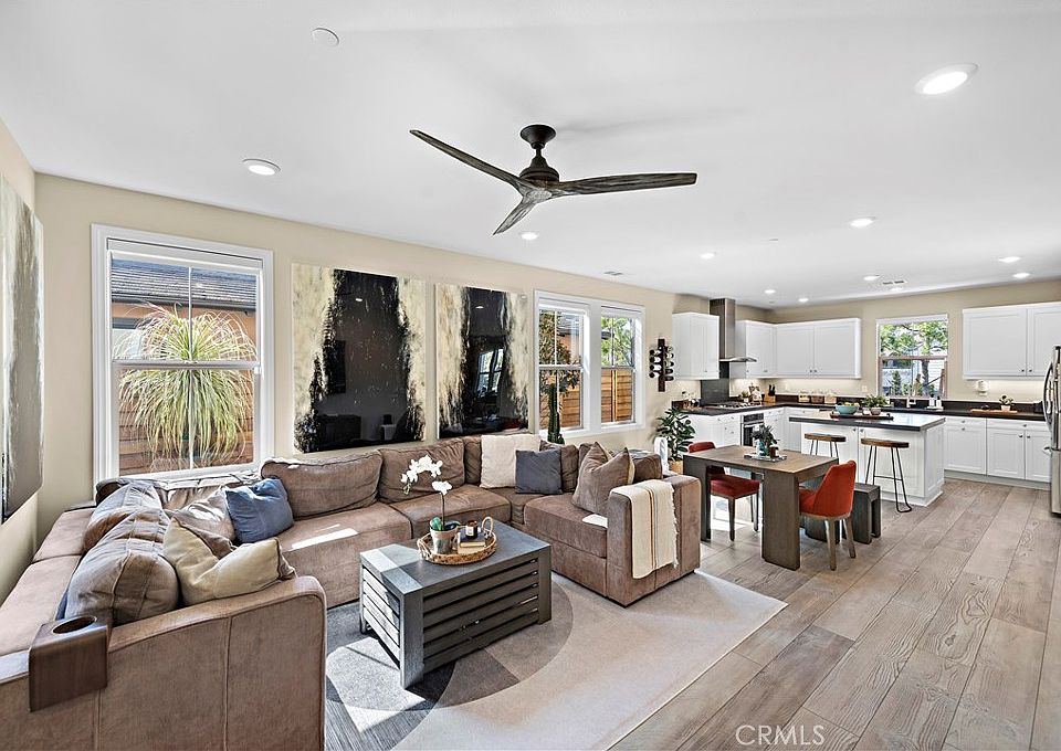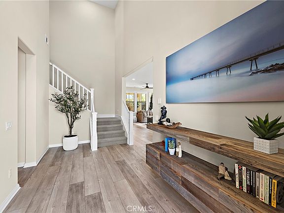 Welcome Home to this highly upgraded Smart Home with its own private driveway in Rancho Mission Viejo. This Single-Family Home offers 3 bedrooms plus office, 3 1/2 baths, with one bedroom with full bath on the first floor. From the moment you step into the 20’ entry and see the wonderful natural light showcasing the Luxury Vinyl Plank floors that continue through the downstairs, you'll know this house is the one! Convenient Office/Den to the left of the entry is the perfect work from home space, play room or gym. To the right, the White Shaker Kitchen with Gray Quartz Island and Quartz Countertops, and stainless steel appliances opens to the generous dining space. Adjacent Great Room with ceiling fan, recessed lights and RH floating media cabinet with single hung French door to coveted Outdoor Room and Zen Backyard Space. The Powder bath with millwork wall treatment plus laundry room with plenty of storage are tucked into the hallway. Continue to the downstairs bedroom suite with motorized shades, walk in closet with organizers and ensuite bath with step in tiled shower.