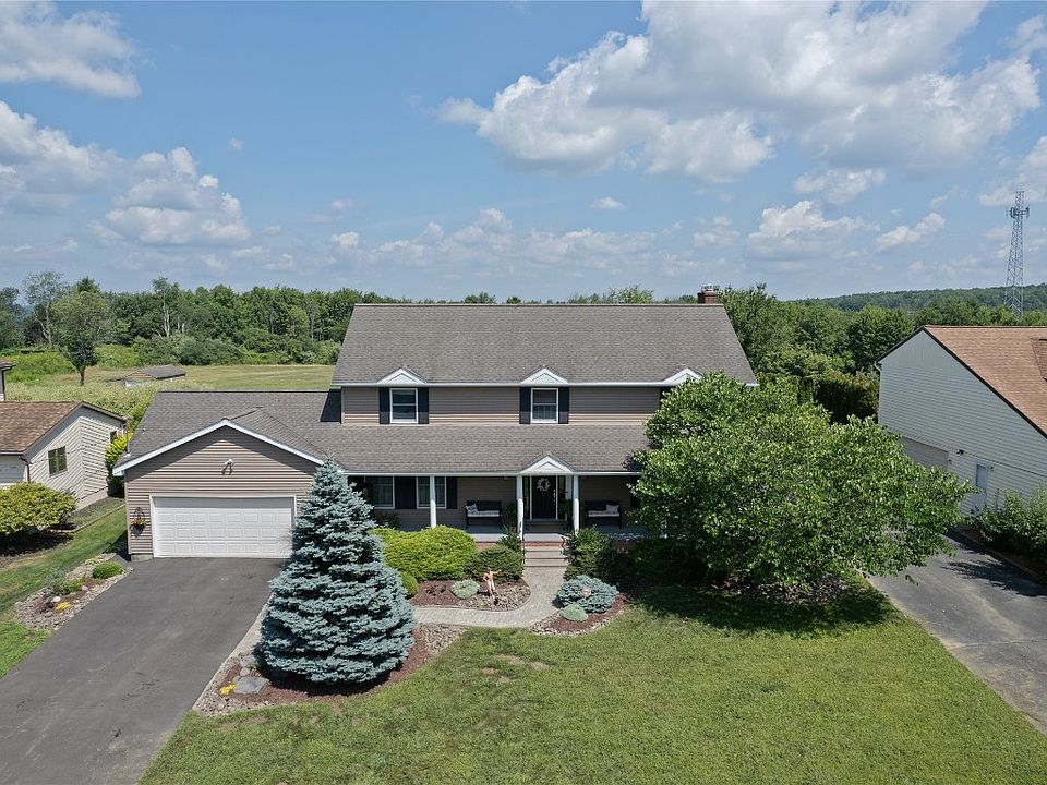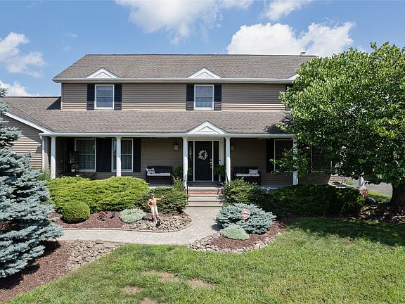 Once in a life time you'll find your forever home!For the buyer who is looking for class,entertaining and that homey feel-here it is! Impressive 2 story with incredible custom kitchen with Viking stove & sub zero frig, marble harringbone back splash & huge quartz island & counter tops.This custom kitchen opens to dining area with french doors and connects to the cozy spacious family room with wood burning wood stove with doors leading out to your own private deck/oasis overlooking nothing but peaceful woods, built in heated in ground pool, shed and basketball court (or party patio!) The primary suite offers 2 closets, one is a walk-in closet and a dressing area.Down the hall you'll find a beautiful updated tiled full bath and 3 more very spacious bedrooms! Need more space? Finish the lower level basement to add even more space. You will fall in love with the "plantation inspired" covered front porch with ceiling fans perfect for relaxing and watching the peaceful views of the valley!