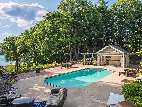 The highest point in "Tuckers Cove," this sprawling and elegant Colonial estate offers the most impressive views of Sagamore Creek. "Tuckers Cove" is custom built to perfection and encompasses 5,024 sq. ft. with 5 bedrooms and 4.5 baths. There is an oversized first floor primary bedroom with walk in closet; bath w/shower & soaking tub. The open floor plan is ideally designed for family living and entertainment. The 16x36 in-ground gunite saltwater pool along with the outdoor enclosed kitchen, 2 outdoor decks, & hot tub add to outdoor activity. In 2012, a tidal docking structure was added that consists of a 4x55 fixed pier with a 3x35 ramp. The property has 120 feet of waterfront on Sagamore Creek with full views from almost every room. The pristine and beautifully appointed kitchen features quarts countertops, a brand-new Subzero refrigerator and other upscale appliances, and is open to the adjacent living room (w/propane fireplace), dining room and family room w/wood burning stone fireplace all w/dazzling water views. A large, finished space over the garage provides ample additional living space including a bedroom w/private bath. Other special features include: a whole-house sound system, 3-car garage and a 65x45 basketball court sitting on 3+ acres. Privately and optimally situated, the house is not visible from the road and is the last house at the end of Sagamore Creek. Truly breathtaking! There are no other waterfront homes that offer the same quality.