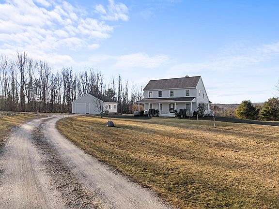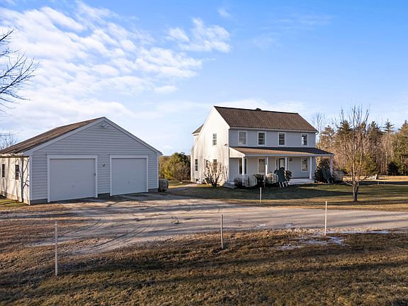 Beautiful custom-built Contemporary Saltbox offering privacy; pastoral views; and stunning vistas of the distant horizon—on a clear day, Mt. Washington is visible. An impressive brick chimney anchors the open-concept kitchen/dining/living rooms, and a dramatic cathedral ceiling in the living room creates an open and airy ambiance. Enjoy morning coffee by the woodstove; in the three-season sunroom; or on the farmer's porch. A bedroom; full bathroom; and spacious pantry/laundry room with dog shower complete the first floor. The second-floor catwalk provides access to the two additional bedrooms; an office/bonus room; full bathroom; and a large loft. This impeccably maintained home offers quality finishes throughout, including hardwood and tile flooring. Artists, makers and craftspeople will appreciate the ~12' x 15' workshop in the full basement. Surrounded by 5.74+/- acres of open pasture fringed by forest, opportunities abound for gardening and lawn games. Over-sized, detached 2-car garage with plenty of additional storage for cords of wood; lawn and snow removal equipment; and yard tools. On-demand generator. Live here and enjoy being minutes to iconic Pineland Farms; historic Sabbathday Lake Shaker Village; and Fox Ridge Golf Course. Central to Portland, Lewiston, and Auburn. A wonderful property, and a fabulous opportunity! Please join us at the Open House on Thursday, January 11, from 3:00 to 5:00 pm.