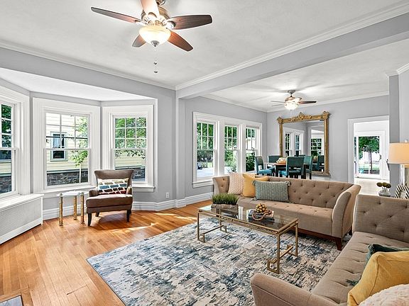 Harmonious blend of grace, scale and detail in this Lower East Side Beauty boasting an open flow and private nooks, expressly updated (both systems and appointments). Situated in one of Melrose's most coveted areas, this home is adorned by bay windows, moldings, gleaming wood flrs and enjoys substantial ceiling height. The foyer is illuminated by natural light & offers sight-lines of the first floor; LR currently arranged as a study, while the expansive family room features a wood-burning fireplace and fantastic gathering space. The kitchen, boasting stainless appliances, island with gas cooktop, quartz, a dining area & opens to the yard, adjoins the mudroom, half bath with laundry and formal DR with gas fireplace. Second level hosts 4+ bedrooms and renovated full bath, offering an array of possibilities for use (see plans), and the top floor features a spa-like full bath and bedroom. Flat yard with lovely green space & patio. Nearby shops, schools, dining & train. Special opportunity!