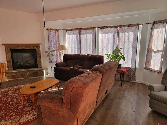 Affordable 3 bedroom home features gas fireplace, 2 full bath, 2 car garage, freshly painted interior and exterior, large back covered deck off the primary ensuite, fully fenced back and side yard, just a few yards to the National forest for fantastic hiking, biking and snowmobiling/cross country skiing/snow shoeing in the winter etc.., 2 minute drive to Lake Hatcher for fishing, kayaking, paddle boarding etc.. you also have use of the other 3 lakes, the tennis courts, park and recreation center in the Pagosa Lakes area. There is also has a community play ground just off of North Pagosa Blvd about 1 mile away .