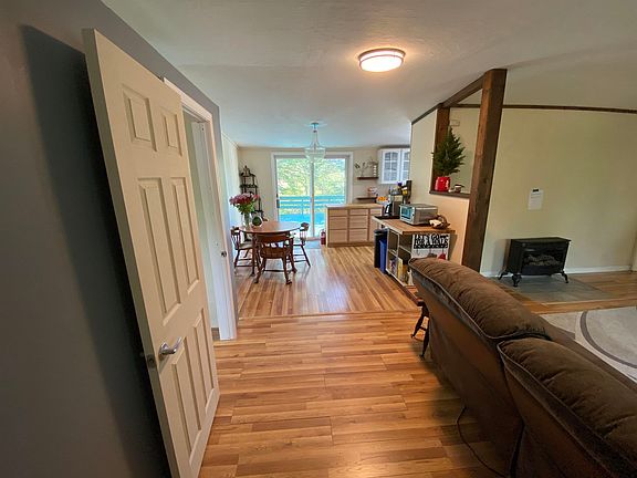 Westerly views of the MOAT Mountains from the large deck at this affordable home on the end of a dead end road in this well kept cooperative park. Or hang out with the same view in the three season enclosed sunroom. Sellers have made numerous upgrades including new hot water tank, vented stove hood, recent laminate flooring in the living areas and updated vinyl tile in the baths. Unit is wired for a whole house backup generator if needed. Just about a mile to all the stores at Settler's Green or enjoy the private shared beach or the trails near the Saco River across the street. Short drive to the slopes and all the White Mountains have to offer while living in an affordable home.