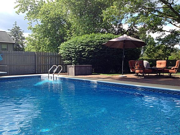 This attractive 2-story is nestled away on a quiet cul-de-sac. Featuring several rooms w/ HW, this charming home includes a large LR, FR w/ fireplace, DR, and mudroom/office and is updated with new kitchen counters/appliances and redone 2.5 baths, newer carpet and new HVAC. Finished basement area w/ wet bar and fireplace. Enjoy privacy amid mature landscaping in the pool and patio area or from the redone 4-seasons room!