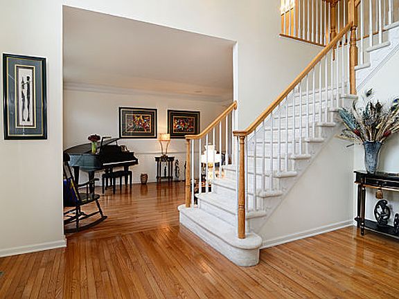 Grand Brick front expanded Eaton Model set on cul-de-sac!Meticulously maintained & updated by original owners.Two story foyer leads to office/den, formal living & dining rooms w moldings & HW flrs, expansive kitchen w center island,skylight over dining,pantry & opens to 2 story sunken family room w 3 skylights,gas fireplace & add'l 4' bumpout.Second floor adorns master suite w tray ceilings,sitting room,tremendous walk in closet,luxurious renovated master bath offering travertine tile, radiant heating,jacuzzi tub,frameless shower & skylight. 3 additional spacious bedrooms & full bath w double vanity. Finished lower level is an entertainers dream with plush carpet, bar area and recreation room & plenty of storage area. 2+ car garages, irrigation system and privacy are just some of the many fine appointments.
