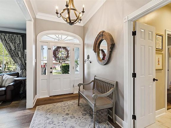 Immaculate 4 bedroom, 3.5 bathroom home tucked away on the Grand Ridge golf course. Light and bright kitchen with island, stainless steel appliances, and bricked floors. Recently renovated primary bath coming off of the primary bedroom with large closet space. Large, arched windows throughout with plantation shutters to allow for natural light or privacy. Beautiful pool that was recently redone that overlooks the golf course. Low assumable flood policy. A must see!
