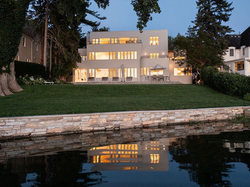 Featured on the cover of “Legendary Homes of the Minneapolis Lakes” by photographer Karen Melvin and writer Bette Hammel, this timeless one-of-a-kind Art Moderne/International Style home was designed to take full advantage of its spectacular west facing lake front on Cedar Lake. One of the few Minneapolis properties with direct waterfront access, the home features walls of glass, clean white walls, translucent glass block windows, phenomenal terraces and multi-level decks, and exceptional sunset views. Art Deco influences are evident throughout. Unique tiled kitchen floors, open main level floor plan, three bedrooms and wonderful family room on 2nd level. The entire 3rd floor is devoted to the primary suite which includes bedroom, sitting room with fireplace, bath with heated floors and steam shower, dressing room, and expansive lake facing terrace. Superb condition, attached garage, smart home technology. Fantastic location near trails, parks & restaurants.
