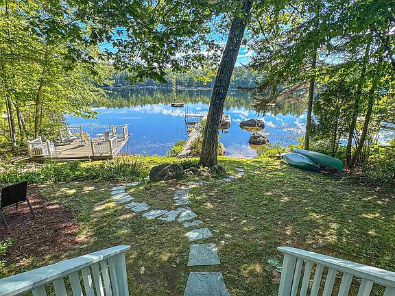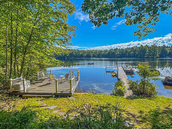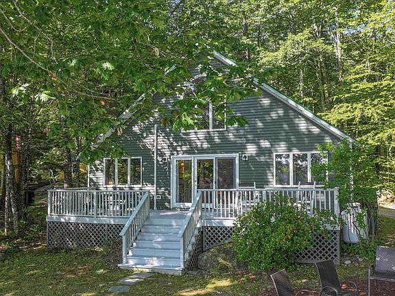 Welcome to Moose Pond Living! This property has spectacular unobstructed lake views with 2 docks! A 40-foot aluminum Northern Dock boat dock and a rebuilt large cocktail dock all in a quiet cove in a no wake zone area with a gradual sandy beach including a large deck facing the lake and outdoor fire pit. The interior has a cathedral ceiling with large windows to capture the light and lake! Open concept kitchen dining room with a bedroom on either side. The living room has a cozy wood fireplace to take the chill off or for ambience. There is a new heat pump with AC and a monitor propane heater. The second-floor loft offers a great room and two side areas for additional sleeping space with large windows capturing Moose Pond! The property has 3 acres of woods with privacy and a stream for wildlife viewing with room for expansion or detached garage. Conveniently located close to Pleasant Mountain Ski Area, Hiking Trails, Denmark Arts Center, Town of Bridgton, Hospital, Shopping, Dining, Professional Businesses, Bridgton Highlands Golf and Tennis Club, Movie Theater and Drive-in, North Conway, NH, Portland Maine, Eastern Slope Regional Airport, Snowmobile Trails and all 4 season activities!