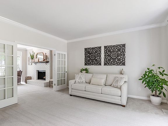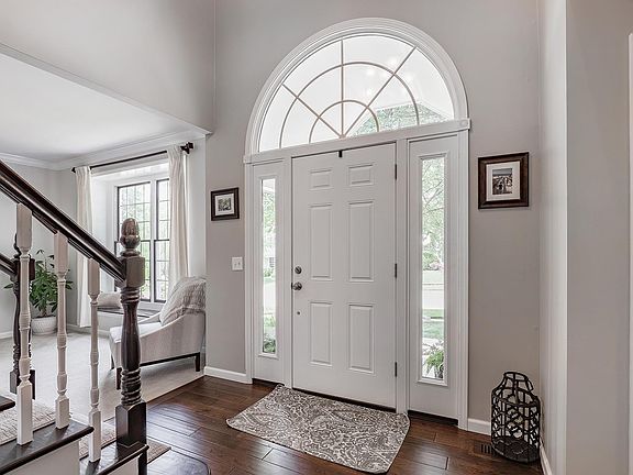Stunning 2-Story boasts 4 Beds, 2.5 Baths, and 3,100+ Sqft of living space, including the partially finished Lower Level! Highlights include: 2-Story Entry, crown molding, newer hardwood floors on Main Floor (2021), newer carpeting on Main and 2nd Floor (2021), newer garage door (2018), formal Dining Room, Living Room with French doors, Family Room with wood burning fireplace and bay window, eat-in Kitchen with island, quartz countertops, custom backsplash, 42” cabinets, stainless steel appliances, walk-in pantry, Main Floor Laundry Room with custom cabinetry, vaulted Master Suite with updated Bath (2021) featuring custom cabinetry, granite, custom wainscoting, bay window, soaking tub, separate tile surround shower, dual vanity, and walk-in closet with built-in shelves, updated hall Bath (2021), and Lower Level with engineer hardwood floors, large Rec Room, custom cabinetry with wet bar, and Den! Relax outside on the large back patio (2018), and enjoy the yard backing to trees!
