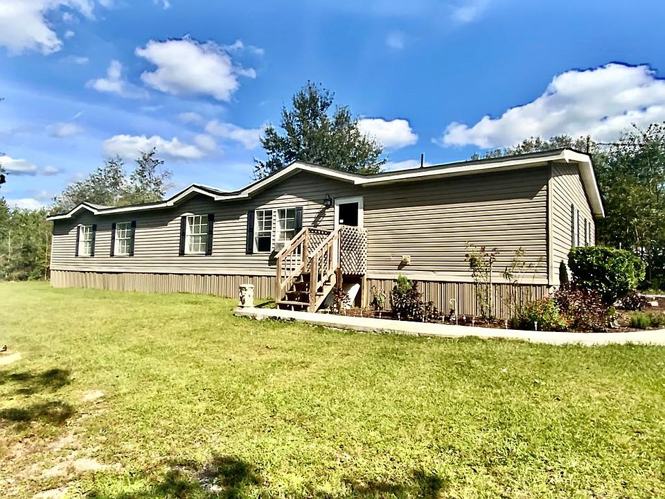 This double-wide home is in great condition sitting at the end of the drive. The home is a Champion 32x80 and features 5 bedrooms and 3 full baths, making it the perfect escape from the big city hassle. Because it has been meticulously kept it is ready for new owners. 2 living areas and a huge kitchen are perfect for large gatherings. The back covered porch is a favorite for bird-watching and bird feeding!