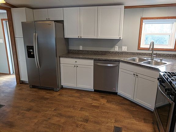 Skyline manufactured 24 x 40 home completely remodeled this year! New kitchen with stainless appliances, new bathrooms, upgraded exterior doors and windows, vinyl siding and steel roof. New paint throughout. Located on a 1/4 acre lot with public water and sewer, natural gas and electric. Spectrum available.