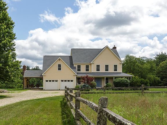 Looking for Privacy? Looking for a place to stretch out? Looking to have a farm? Or are you looking for all of the above?? Well do I have the home for you! This beautiful 3 bedroom Farmhouse style Colonial nestled perfectly in the middle of 20+ acres, is looking for a new owner! Prepare to be in awe from the moment you pull into the long private driveway. When you get your first glimpse of the home, you will feel the excitement building. This home has been lovingly maintained by the original owners for the last 21 years and checks ALL the boxes! It is literally the perfect place to 'get away' from it all. Enter into the home from the stunning mahogany front porch. Inside you will find a gourmet kitchen with a Thermador range and stainless steel appliances. A true office with custom built-in shelving, a cozy living room with a wall of windows...be prepared to take in some of the most beautiful sunsets around! Retreat to the primary suite at the end of a long day and take a relaxing soak in the large jetted tub. The outdoor fireplace is the perfect spot to unwind and take in all that nature has to offer. The barn has a custom made chicken coop...it has to be seen to be appreciated! There is a cabin at the rear of the property, with a little work, you could make that into an in-law, Air B&B, a guest house, or just another hangout spot for yourself after a day of kayaking or swimming in the river. This home is a MUST SEE! A property this beautiful is sure to go quick.