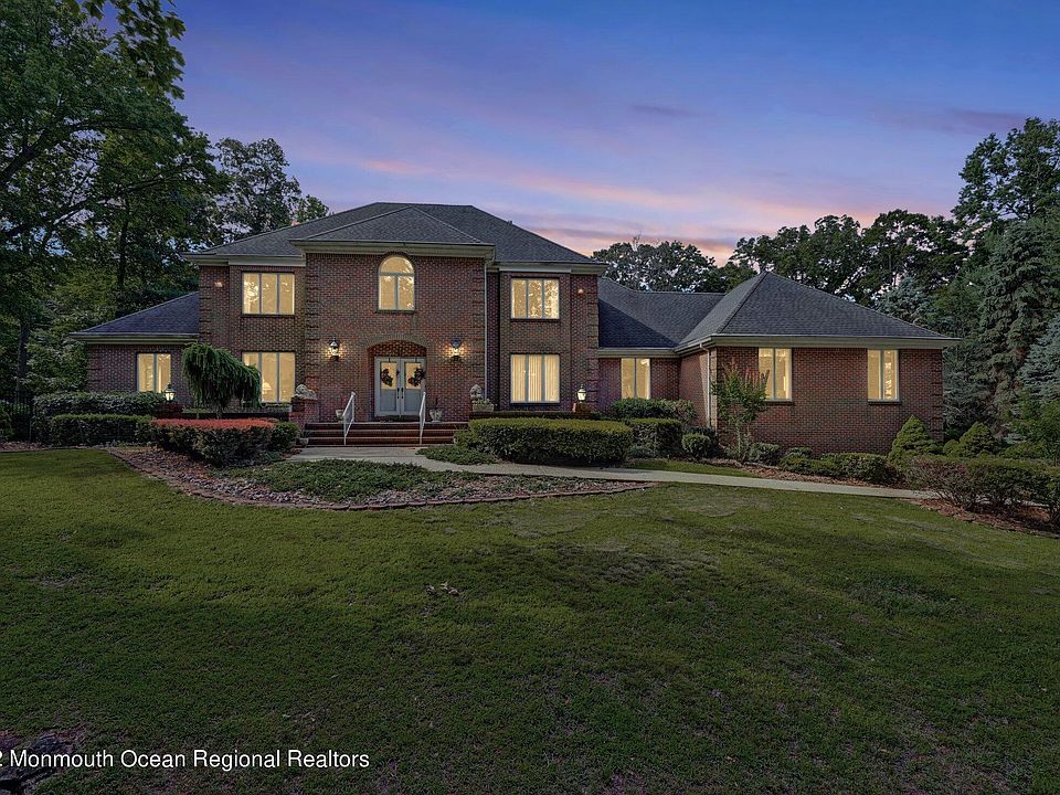 This is a coming soon listings showings to start on 7/16/22. Fantastic Neighborhood! Wooded hilltop lot in prestigious subdivision ''Hidden Forest.'' Quality constructed executive Normandy model, traditional center hall colonial Family room with masonry fireplace, Spacious kitchen and large gazebo dinette overlooking private backyard with pool. Formal dining and living rooms, office & large great room w/vaulted ceiling, first and second floor have 9 foot ceilings, cathedral ceiling in stately foyer with spiral staircase.All rooms have hardwood floors except for two bedrooms with carpet. 13 course finished basement with high ceilings.Oversized 3 car garage, brick on 3 sides. Priced to sell. Close to NJ Tpk (8 minutes) for comuting to the New York, 50 minutes to Philly.30 minutes to beach! * Two Story Foyer with Curved Oak Stairs and balcony sitting area for computer and desk. hardwood flooring.