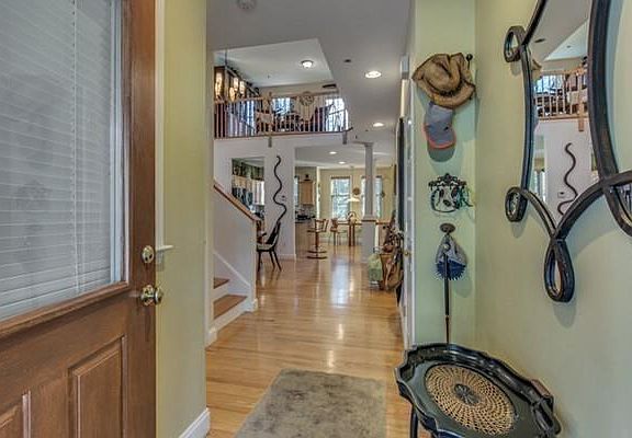 One of the kinds! "Craftsman" style Town House. Open concept floor plan with 17' ceilings in dining room, step down living room with fireplace and French doors. Private patio is great for Summer grilling and entertainment. Beautifully landscaped private back yard area and Japanese garden in the front! Large Eat in kitchen with newer appliances and granite counter top has large island and open breakfast area First floor master suite. Three full bathrooms tastefully renovated with style and best quality materials. Elegant loft area is perfect for home library. Basement finished with Owens-Corning Basement Finishing System has large window to let natural light in. Pre-vired for home theater. Two deeded parking spaces ( one carport) Walking distance to Eliot T station. Easy access to Rte 9 and 128 Public playground is just across the street. Angier / Zervas school buffer zone. School bus stop is at the end of a driveway!