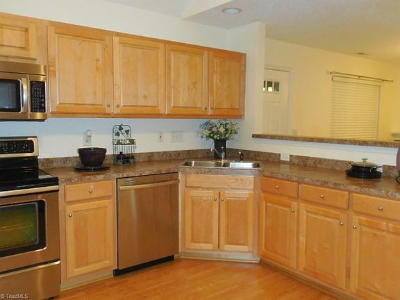 Move-in Ready, 2 story end unit townhouse with patio. 1Car Garage, Central a/c, Gas fireplace, Vaulted Ceiling, Stainless appliances oven range, microwave, refrigerator and dishwasher. 3 bedrooms, (A loft on the 2nd level overlooking the living room can serve as a 3rd bedroom.) Master bedroom on main level. 2 full baths, Neutral paint colors/ carpet. Hardwood floors, Utility room with washer/dryer hook up. Community swimming pool for owners.. Conv I-40 shopping, restaurants, hotel, and transportation.