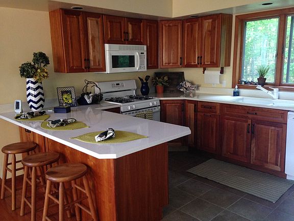 Year round contemporary with lake views and potential mooring for boat up to 20 feet. Home has open floor plan for kitchen, dining & living room w/fireplace.Shared waterfront for 6 Homes. Portable generator included in sale powers home during power outages.