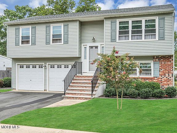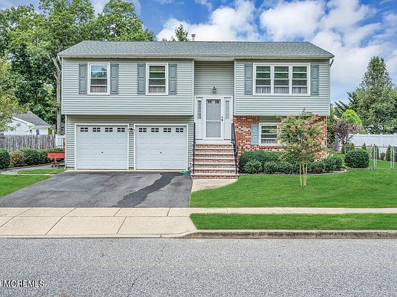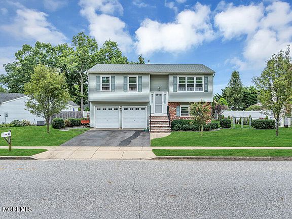 Lovely, Well Cared for 4-bedroom home in move-in condition in sought-after Ramtown community. Pride in homeownership abounds! Newer in 2018: Timberline Roof (Main Roof), Thermal Windows with Low-E Argon Gas. Leaf Filter gutter protection system. Meticulous backyard with mature landscaping, patio, and 15 '7'' x 12'3'' Sunroom. Sunroom roof new in 2024. Talk about a room with a view! Insulated vinyl siding. Newer Front Entrance to home complete with stylish front door & sidelights. Gleaming solid oak hardwood floors throughout living & dining area and hallway. Upper level features an L-shaped living & dining room, three bedrooms, newer full bathroom & eat-in kitchen w/granite counter tops, 42'' raised panel maple cabinets, brand new microwave, ceramic floor & stainless steel appliances. Three bedrooms upstairs & first floor bedroom, family room, new half bath, laundry & sunroom on finished lower level (The sunroom was built on 1'x3' footings so you can build up) Family room stays cozy year round w/its insulated floors. 2-car garage w/9 ft ceiling. Newer 6 panel colonial interior doors. Home is perfect for entertaining! A perfectly manicured yard surrounded by white vinyl fence! Inground sprinklers. Storage shed. Great location near the Garden State Parkway, Ramtown shopping centers, parks & the beach! Featured listing.