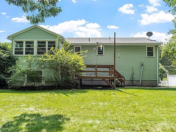 Highly sought after neighborhood location for this oversized raised ranch home. Super convenient to everything - minutes to highways, stores, schools, trails etc. Spacious rooms - living room with fireplace and hardwood floors - open concept - kitchen has wood cabinets, granite countertops, gas cooking range and eat-in area. Dining room with hardwoods adjacent to the sunroom with baseboard heat and a slate tile floor all overlooking the private backyard. Upper level has 3 bedrooms with hardwood floors and closets. Main bathroom with double sinks and granite countertop. Lower level is perfect for a guest suite or a game room, home office and boasts additional space with fireplace, full bath and laundry. 2 car garage under - Big beautiful private back yard with established landscaping. Hot water tank (2022), new dishwasher (2023), new wall a/c (2023), new roof (2019), replacement windows (2021) french drain (2012 or 2014) - Leader Basement System.