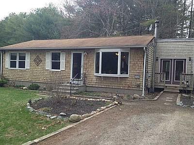 A 2 bed functioning as 3 .Open Kitch & LR, heated SunRm w/propane stove,finished family Rm in lower level w/woodstove.New plumbing , wooded acre lot . Yards from Golf course & library.Minutes to beach .Seller to pay up to $3000 in closing. MOTIVATED