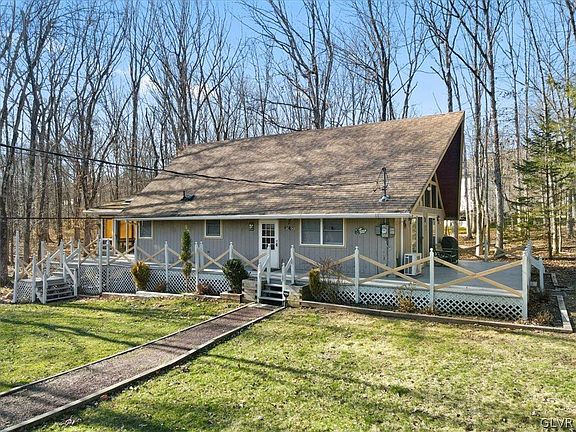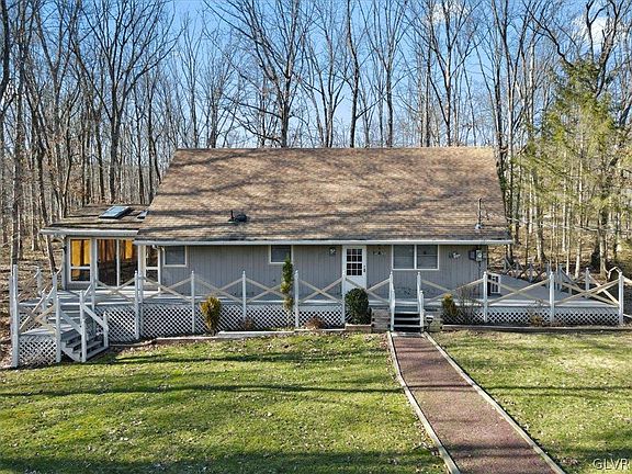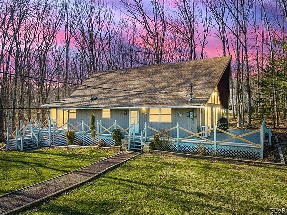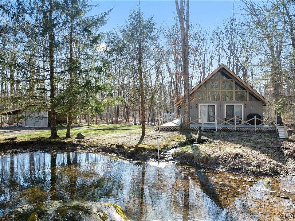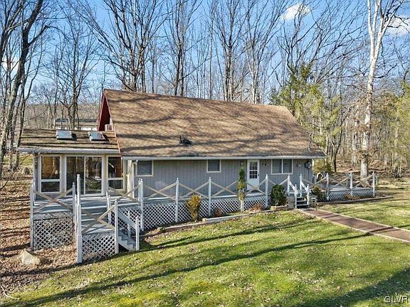Enjoy the perfect blend of modern updates and rustic charm this Chalet has to offer, nestled in the picturesque Beltzville Lake Estates. As you step inside, you are greeted by a vaulted ceiling and a wonderful wall of windows which add so much light. The updated plank flooring provides warmth and elegance. The focal point of the living area is the cozy wood stove, perfect for chilly evening spent relaxing. There is ample space for family and guests with 3 bedrooms and 2 full baths including a private loft. There is also a 4 season which is perfect for a relaxing space or a fun game room. Enjoy the spacious wrap-around deck and take in the serene views of the private pond, perfect for enjoying your morning coffee or hosting a gathering. Enjoy outdoor adventures at the private lake within Beltzville Lake Estates , where you can swim, kayak or soak up the sun. For more summertime fun Beltzville State Park is only a short drive, offering motorboating, fishing, hiking and more. Whether you seek a peaceful getaway or an active outdoor lifestyle, this chalet provides the ideal setting form making lasting memories with family and friends.