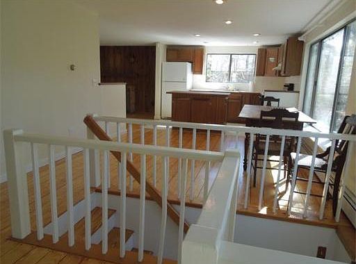Bright and open! Set on close to an acre on a quiet street this cute 2-bdrm has expansion possibilities with a newer 4-bdrm septic. Fresh paint inside and out and gleaming wood floors have just been refinished! Lower level is finished for extra space but not included in the square footage. Livingroom with fireplace and deck overlooking the private back yard. A charming setting at the right price!
