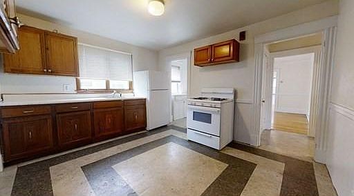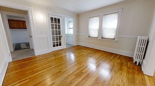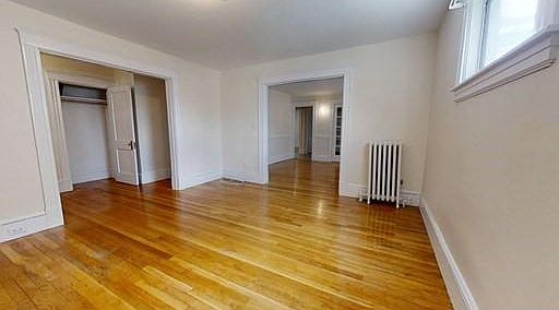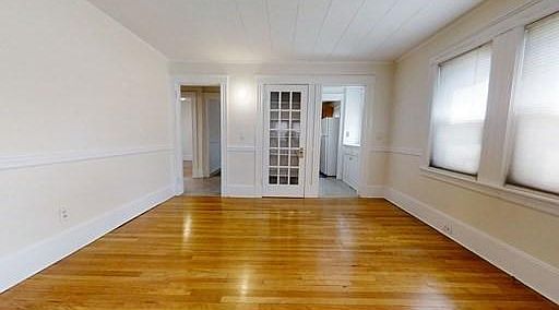 West Watertown , 5 rooms 2 bedrooms on first floor of 2 family. Features include replacement windows, wood floors, refrigerator, washer and dryer hookups. Parking for 2 cars off street. Close to Waverly Square buses, commuter rail and shops. Oil heat and hot water. Lease to end 7/31/2022 Pets and smoking are not permitted Initial views are by virtual tour