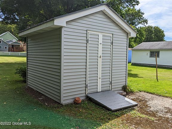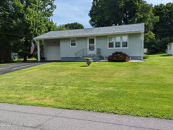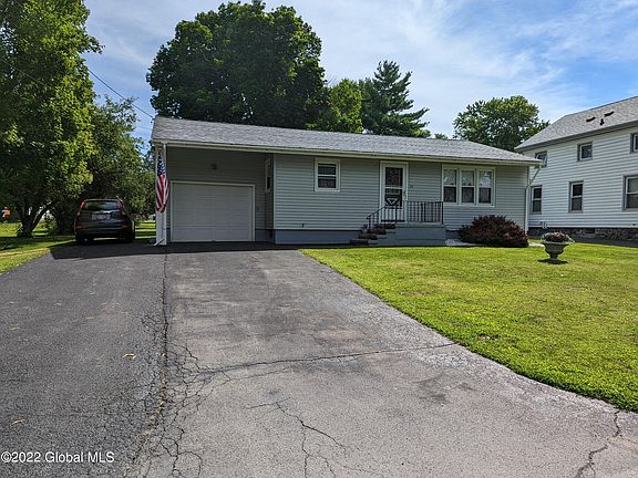 This ranch home is located on a quiet side street with a large beautiful yard - plant your garden, put up a pool or just sit and relax. The home has 2 bedrooms/1bath, the Carriage House kitchen is a working kitchen with a large carriage china cabinet and a small dining area open into the livingroom. It has hardwood flooring, a smaller one car attached garage, utility shed large enough for riding lawn equipment, Bedrooms are average in size, the laundry is located in the basement but may be able to brought upstairs. New roof 2021 and has vinyl siding. Close to schools, the NYS thruway and Cooperstown, Albany, Utica and Saratoga! Everything you need