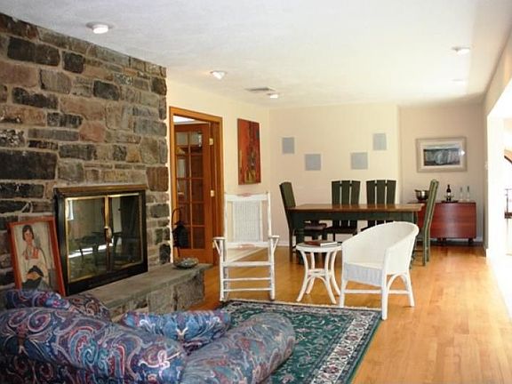 Set in the Sourland Mountain, this sophisticated home has a stunning Gourmet Kitchen w/cabinetry hand-crafted from wood dating back more than 600 years, full-sized sinks made from soapstone, striking