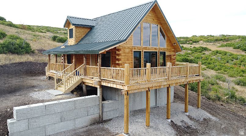 Stunning new 3-story log cabin with panoramic views, located in the peaceful Indian Ridge community in Indianola Valley-just under an hour from Provo. This beautifully crafted, off-grid cabin offers the perfect blend of comfort, seclusion, and year-round adventure. The main floor features two bedrooms, one full bathroom, and an open-concept kitchen and great room that opens onto a large wraparound deck on two sides-ideal for relaxing and enjoying the incredible views. Upstairs, you'll find a large open loft, perfect for additional living or sleeping space. The lower-level basement is already framed and ready for additional bedrooms and a bathroom. It also includes a double-door entry with a designated parking area for ATVs and snowmobiles, making it a great year-round retreat. For video of this beautiful cabin, check out the following link. https://youtu.be/3huSs1B0JXw This is true off-grid living, with water provided by Indian Ridge's private water company, a 1,000 gallon water storage tank, propane for gas, a septic system, and a generator for power. Winter access (typically December through April) is available by tracked vehicles only. A solar system could be installed for an additional $40,000. The property includes two adjacent lots: Lot Q-20 (1.03 acres) and Lot Q-21 (1.10 acres), Sanpete County Tax ID numbers 55367 and 55368.