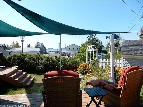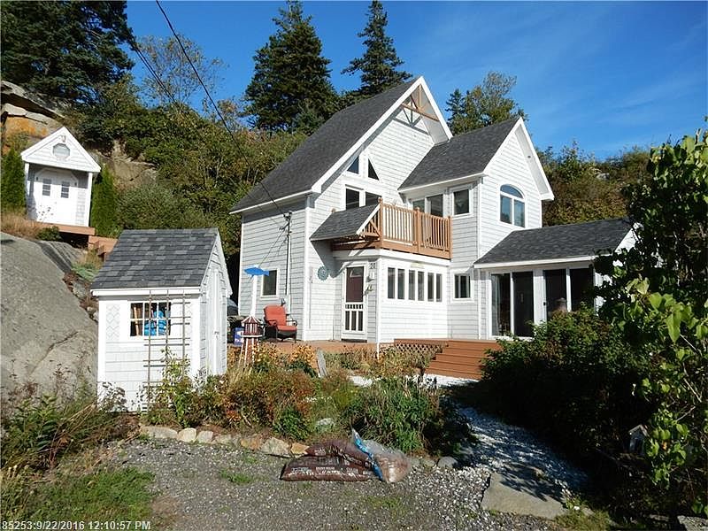 Unique Year Round Home perched high on a rock ledge. One of a kind setting overlooking working waterfront. Cozy cottage feel with 2 living rooms, gas wood stove, and 2 baths. Two large bedrooms with balcony., and 3 spacious decks. Right of way to the ocean completes this rare offering.