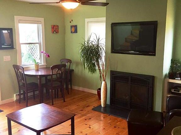 This freestanding two bedroom cottage, in a great tucked away Provincetown west end location, offers two levels of living and great private outdoor space. The pine floors throughout give the home a warm, cozy feel. The entry level offers an open living/dining area with gas fireplace, a guest bedroom, updated bath and kitchen. The living space leads out to a fenced exclusive deck / yard area for dining and entertaining. The second level master bedroom, with vaulted ceilings, has attached updated bath and laundry. Additionally, there are split system a/c units and one car parking. This is the only free standing unit in this well maintained condominium association.