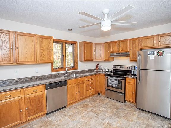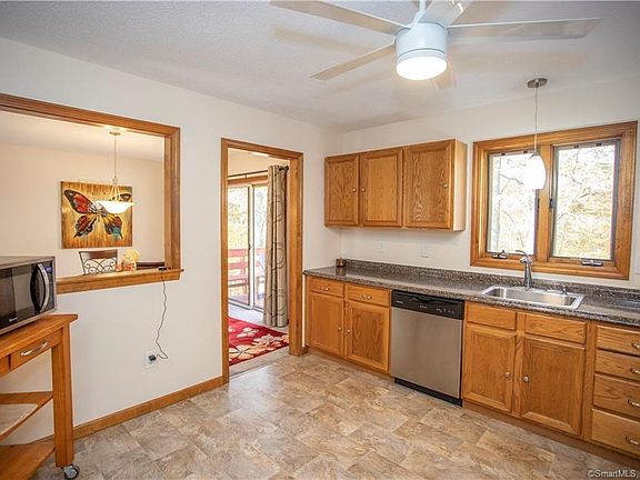 This updated home is located on a cul-de-sec in beautiful Ivoryton, CT. Living room includes a high-end pellet stove and a large bow window offering plenty of natural light. Continue down the hall to 3 bedrooms, the master has a double closet and access to the full bath. The lower level large family room has a walk out slider and full bath. This 3 acre lot is a very special property--won't last long.