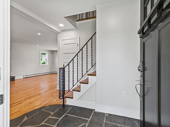 Beautifully renovated Colonial house in the Brentwood Neighborhood of Cape Elizabeth. With 3 bedrooms, 2.5 baths, an open concept first floor, large mudroom/laundry room and family room in the basement , there is lots of room to spread out! Primary bedroom has an en suite bath with a soothing private salon feel! The 2 car garage leads directly into the mud room, as does the deck from the back of the house... providing clean entries into the living space. Blue cabinets, blue tiled back splash against white walls makes for a stunning and inviting kitchen space! Kitchen includes new stainless appliances, quartz kitchen counters, built-in microwave and....a dry bar with a built in wine cooler! The living room's floor to ceiling stone gas fireplace creates a cozy space to gather around for hours! The finished basement also has a gas fireplace,