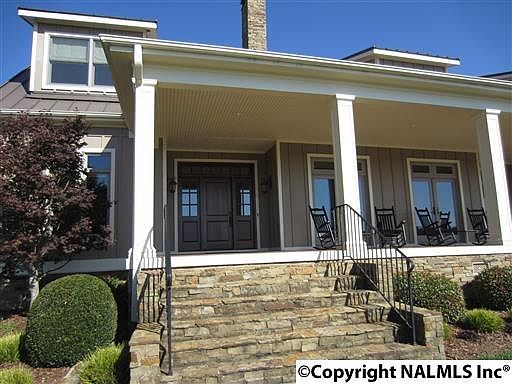 Exquisite Custom Built Home in Riverbend Farm on 9 Acres--This immaculate home is constructed of Hardy board & rock. Has 2 large covered porches, a wrought iron & rock enclosed patio & screened in porch, all for enjoying the beautiful views. 3 bay garage w/storage and dog shower. Interior has dark walnut floors. Formal DR. Kitchen with pantry/storm room, granite, stainless appliances, large island, & breakfast nook. LR has wood burning fireplace, coffered ceilings, & cherry built-ins. Office w/built-ins. Mastr suite w/large bath and walk-in closet. Extra closets throughout. Upstairs offers 2 BDs w/jack & jill bath. Large landing and unfinished bonus. Easy commute to Huntsville.