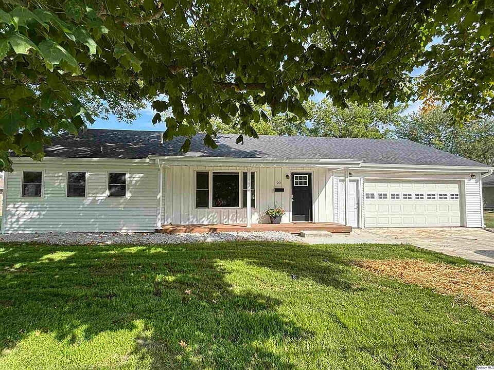 This home is has been completely renovated. Full list of renovations include: New roof, windows, siding, front porch, gutters, drain spouts, exterior doors, new windows on the garage door. The bathrooms are all new and have new plumbing. New insulation in the attic. New ductwork and HVAC. New gas water heater. New kitchen cabinets, garbage disposal, microwave and dishwasher. Along with all new flooring, interior paint, trim, lights. New electric fireplace. The original enclosed porch area has been finished and converted to mudroom/laundry room adding an additional 144 sq. ft of living space.