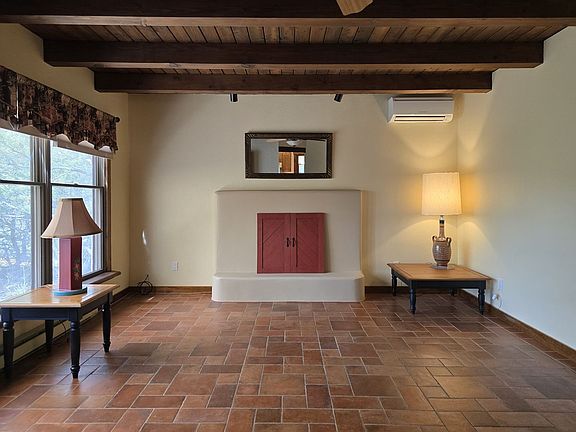 Nestled in a private, wooded setting surrounded by trees, this charming 1,100 square foot home offers classic Southwest style and comfortable living. Featuring two bedrooms and two bathrooms, the home showcases a living room with wood ceilings, exposed vigas, a cozy fireplace, and a minisplit for cooling. The master bedroom has direct access to the backyard, while a sunroom fills the space with natural light. Tile flooring runs throughout the main areas, with soft carpet in the bedrooms. The kitchen includes an electric stove/range, dishwasher, and refrigerator, with an in-unit washer and dryer for added convenience. Enjoy the outdoors with a furnished patio and cabana, as well as an enclosed portion of the yard. Electric baseboard heating keeps the home warm in cooler months, and a garage provides secure parking. Offered furnished or unfurnished, this peaceful Santa Fe retreat blends style, comfort, and nature. Brant Goodman, Qualifying Broker. Rental Fees & Policies Pet Policy $250 non-refundable pet administration fee $50/month per pet Early Lease Termination Fee equal to one month's rent plus gross receipts tax Tenant remains responsible for rent and utilities until the unit is re-rented Payment Policies Late Fee: 5% of monthly rent if payment is not received on time NSF Fee: $25 charge for returned payments Utilities Tenants are responsible for establishing an account with PNM for electricity service and with the City for trash collection. Please note: There is no gas service at the property. Water is supplied via a private well, and the property is connected to a septic system for sewage. Contact: Katelynn James Landseer Management 613 Old Santa Fe Trail Santa Fe, NM 87505