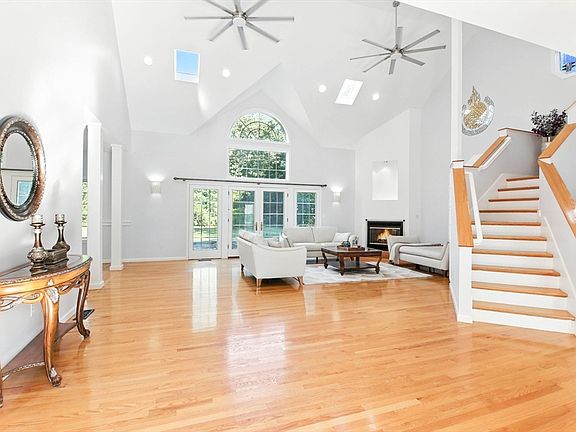 An impressive two-story foyer with soaring ceilings and dramatic windows sets the stage the moment you arrive. Sunlight pours across gleaming hardwood floors, creating a sense of scale and sophistication that flows throughout the home. The main level offers a spacious living room with fireplace and sliders to the backyard, a dining room, and a kitchen with center island, stainless steel appliances, and a windowed sitting area. A family room and sunroom with beamed ceilings and skylights add even more living space. Upstairs, the primary suite features a private bath and is joined by three additional bedrooms, including one with a tandem layout. The finished lower level expands the possibilities for a home office, gym, or playroom. Set on a generous yard in one of Westfield’s most desirable areas, this contemporary colonial delivers presence, light, and space in every detail. Open House Thursday, Sept. 11th from 6:00pm-7:30pm.