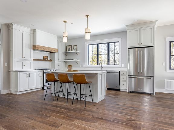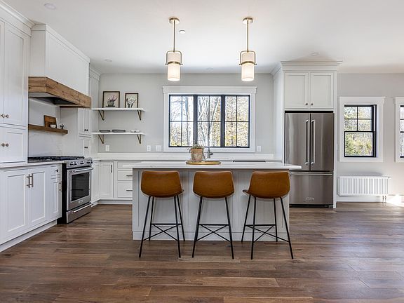 This extraordinary home has just been completed by Arrow Home and Design, Jackson Built's modern line. The ''Caldwell'' features an outstanding layout where the gourmet kitchen is the focal point. Custom cabinetry, quartz counters, a large island, brass accents and light fixtures- open to the dining room with bar area including a built-in beverage refrigerator and reclaimed barn board counter plus living room with a gas fireplace with reclaimed wood mantle. Office/den with sliding barn door. Mudroom with ample closet space and a powder room. Upstairs are a primary suite and two additional bedrooms all with heat pumps for AC and supplemental heat. Laundry room with washer/dryer included. Both the primary and the guest bath include a custom vanity with double sinks and quartz tops with a tiled walk-in shower in the primary and a tub/shower with tiled surround in the guest bath. Beautiful wallpaper accents in the den and all three baths, as well as distinctive plumbing and lighting fixtures throughout. Two car garage with the potential to finish an additional 600 square feet space overhead or use as storage. Walk-out daylight basement. Blown-in cellulose insulation and an energy efficient Viessmann boiler with European wall-mounted radiators make is easy to keep the home warm in the winter. High quality building materials such as Anderson windows, HardiePlank siding, and Azek trim. Sprinkler system for fire safety. Fantastic neighborhood just 5 minutes from downtown Freeport and under 30 minutes to Portland, L/A, and Bath/Brunswick. Truly exceptional!