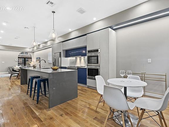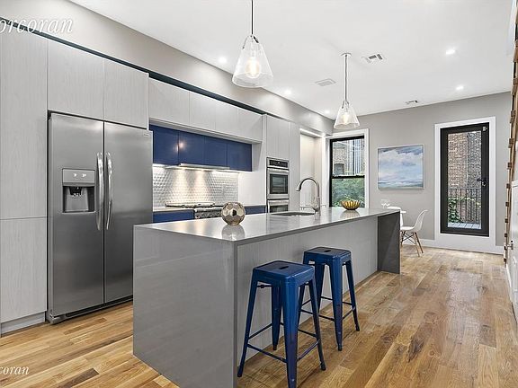Charming three story townhouse located in the pristine historic district of North Crown Heights. Enter this two family home through the parlor floor into the owners duplex. This unit features three bedrooms, two and a half bathrooms, updated kitchens and baths, skylight, high ceilings and an open layout for the kitchen, living/ dining room. The garden rental completes this townhouse with two bedrooms, one bathroom, and private backyard. This move in ready beauty is on a spectacular block and close to the Kingston-Throop Ave C train station & Kingston Ave 3 train stations. Brower Park and Brooklyn Children's Museum close by. Only 35 minutes to Manhattan.