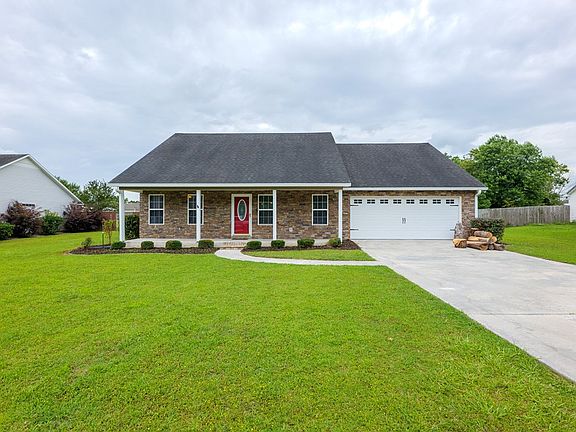 Look at that front porch! Grab your rocker, because this is the place to be! Charming 3 bedroom/2 bathroom home situated on a 1/2 acre lot just 10 minutes north of Moody AFB! Open concept kitchen, breakfast, and living room. Kitchen has abundant cabinetry and counter space, island with seating, and pantry. Desirable split floor plan with easy to maintain laminate in main areas, carpet in bedrooms, and tile in bathrooms. Large master bedroom with vaulted ceilings and oversized master bathroom has a large his and hers vanity, Jacuzzi tub, and separate walk-in shower. Oversized spare bedrooms and neutral paint colors throughout. 30x15 screened patio is the perfect place to relax after a long day! Fenced back yard is great for children and pets. Fire pit and storage shed are included. This property is eligible for 100% USDA financing to qualified buyers!