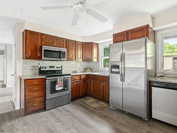 Tastefully renovated ranch home offering 4 bedrooms plus den/office space. Two new full bathrooms. Freshly painted throughout, Kitchen features new granite countertops and stainless steel appliances. New carpeting, flooring, and boiler. Deck overlooking the rear yard with a large storage shed. Exterior updates include new windows and vinyl siding. Pull into this house on the new asphalt driveway. Great location - close to routes 80 and 206.