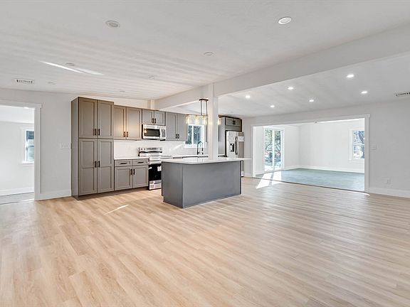 Open house cancelled, offer accepted. Experience one level living at its best in this spectacularly renovated 4 BR 2.5 BA Ranch that has to be seen to be appreciated. Beautifully crafted kitchen with quartz countertops, large island and S/S appliances, the open and airy layout leads to a family room designed for family entertaining with walkout access to a composite deck and expansive back yard. Large windows allow for natural light to envelope every room throughout. The primary bedroom is spacious & inviting, offering walk-in closets, luxurious ensuite bath adorned with a 6 ft tiled shower. Completing the bedroom count there are 2 more generous sized BR & a 4th BR with its own bath that could be perfect as an in-law suite, guest suite, or even a second primary suite. Updates include laundry room, plumbing, electrical, flooring, decking, new siding, roof and new a/c unit. Located in a convenient neighborhood, minutes to highly rated schools, easy access to Shoppers world.