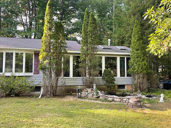 This home features an easy flowing layout. On the first floor you will find a large living room open to dining room. A Beautiful 4 season sun room with Floor to ceiling windows through out and vaulted beam ceilings, where you can enjoy the Jacuzzi. Two bedrooms and Two bathrooms. Need More space? Downstairs you will find two more bedrooms, a bathroom, and another living space waiting for you to complete. Outside enjoy an established large corner lot partially fenced with pond and garden. Seller if offering a $15,000 credit at closing for repairs